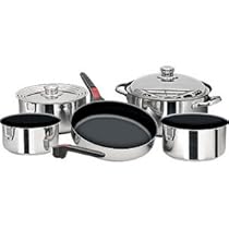 Review for Magma Nestable Non-Stick Stainless Steel Cookware (Set of 10) All have triple clad bottoms (stainless steel, aluminum, stainless steel) and are milled perfectly flat for even heat distribution on gas, electric or ceramic cooktops This set features DuPont Teflon Select Non-Stick coatings for worry-free cooking and simple clean-up Yacht quality cookware at a value price. DuPont Teflon select nonstick coating; triple-clad