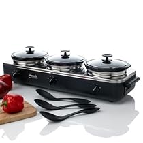 Check for best offer Rival SCRBC909-BS Trio 3-Quart Slow Cooker Crock Pot Crock Buffet Server, Black/Stainless SCRBC909-BS contains three 3qt stoneware inserts for preparing several dishes at once However the ability to actually cook food directly in the unit has not been available Three individual temperature controls allow the pots to cook food at a low, high or warm setting Three individual
