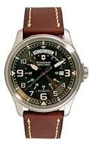 Check for best offer Victorinox Swiss Army Men's 241396 Infantry Vintage Day and Date Mecha Watch Classic materials pair with military-inspired details in the Victorinox Swiss Army Men's Infantry Vintage Day and Date Mecha Watch #V251396 This watch has a Swiss-quartz mechanical movement The timepiece's infantry roots are on display with a dark, olive-tinted dial with drab yellow accents, including Arabic numeral indexes on each hour, a 24-hour counter featuring small Arabic numerals, a subtle date window at three o'clock, and a curved, showcase day-of-the-week window that displays the current